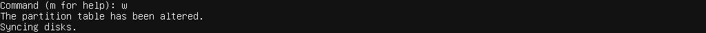 最後在Command輸入區的地方輸入w,保存修改後的分區資料